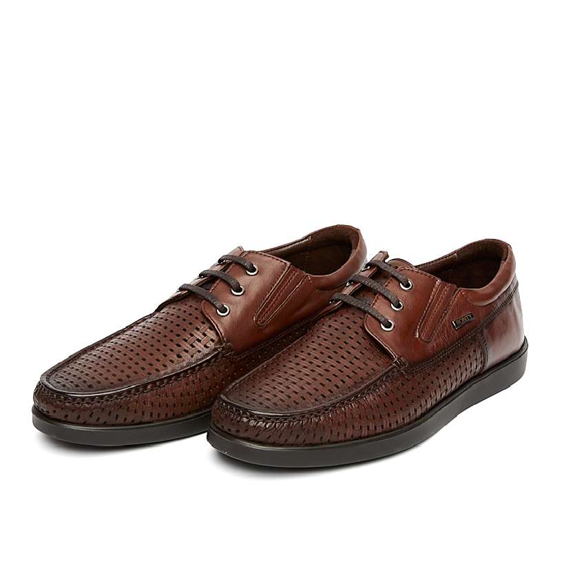 Крепкие, мягкие и лёгкие шнурованные мокасины турецкого производства отличаются удобством и высоким качеством. Суперудобная колодка, отлично фиксируют ногу. Цвет темно-коричневый. Комфорт для стоп с нормальным и низким подьёмом, идеальны для долгой носки. Подойдут для любых ступней, кроме самых узких и болезненно широких. Упругая и эластичная ремонтопригодная полиуретановая подошва вместе с интегрированным каблуком в 25 мм высотой обеспечивают защиту суставов.