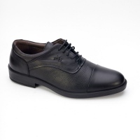 Мужские туфли в квазиклассическом стиле. Цвет черный. Из натуральной кожи первой группы качества. Удобная колодка. Для любых стоп с нормальным подъёмом в пределах ортопедической нормы, кроме самых узких и гипершироких. Утолщённые и мягкие подошва и каблук из современного полиуретанового эластомера, долго не стираются, почти не скользят, позволяют хорошо чувствовать педали и амортизируют при ходьбе.