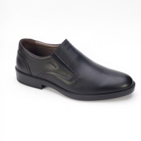 Мужские туфли в квазиклассическом стиле. Цвет черный. Из натуральной кожи первой группы качества, крепкие и износостойкие. Удобная колодка. Для любых стоп в пределах ортопедической нормы, кроме самых узких и гипершироких. Утолщённые и мягкие подошва и каблук из современного полиуретанового эластомера, долго не стираются, почти не скользят, позволяют хорошо чувствовать педали и амортизируют при ходьбе.
