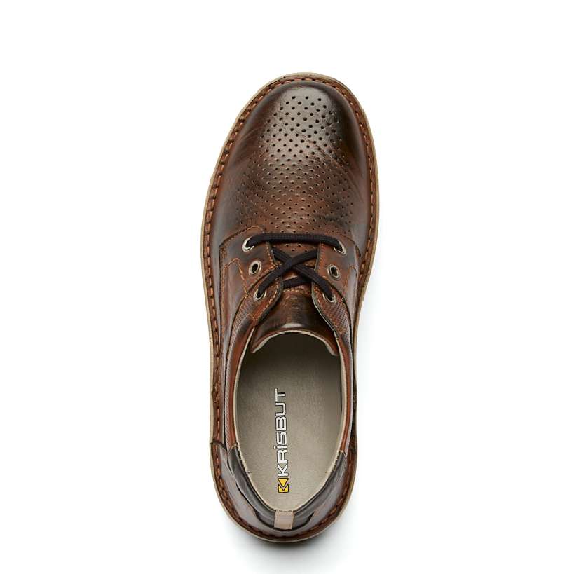 Красивые, мягкие и лёгкие (320 грамм) коричневые полуботинки от Bonty производства фабрики Krisbut отличаются изысканностью, комфортом и дорогим внешним видом. Отлично фиксируют ногу благодаря шнуровке в 3 ряда люверсов. Комфорт для стоп с любым подьёмом, идеальны для долгой носки. Подойдут для любых ступней, кроме самых узких и очень широких. Упругая и эластичная полиуретановая сплошная подошва обеспечивают защиту суставов.