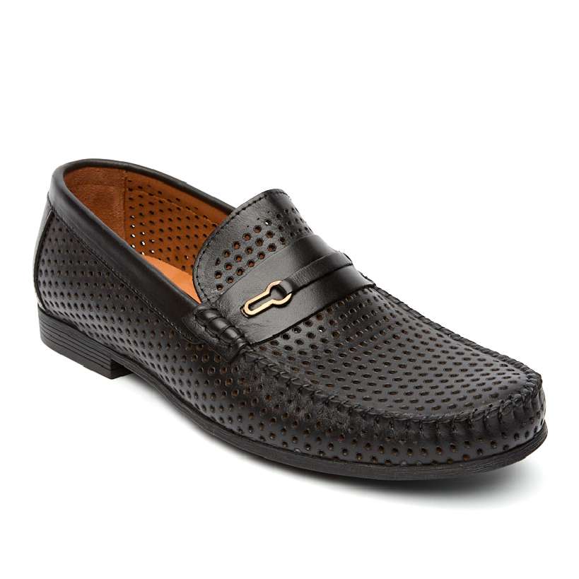 Мужские мокасины с перфорацией. Цвет черный. Мягкая и крепкая турецкая кожа хромового дубления, удобная колодка. Лёгкие - 290 грамм. Для любых стоп, кроме самых узких. Подошва и каблук из современного эластомера не скользят, позволяют хорошо чувствовать педали и амортизируют при ходьбе.