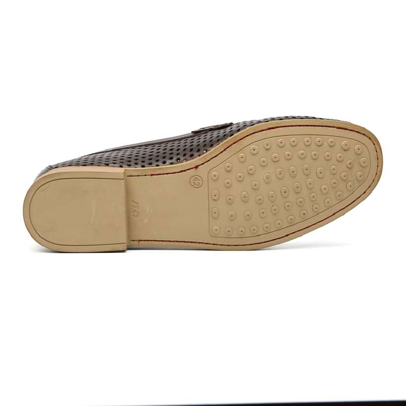 Мужские мокасины с перфорацией. Цвет коричневый. Мягкая и крепкая турецкая кожа хромового дубления, удобная колодка. Лёгкие - 290 грамм. Для любых стоп, кроме самых узких. Подошва и каблук из современного эластомера не скользят, позволяют хорошо чувствовать педали и амортизируют при ходьбе.
