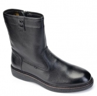 Мужские высокие зимние ботинки в классическом городском стиле на шнурках и молнии с меховым подкладом. Цвет черный. Из натуральной кожи КРС первой группы качества. Очень удобная колодка. Для любых стоп в пределах ортопедической нормы, кроме самых узких и гипершироких. Утолщённые и мягкие подошва и каблук. Из современного полиуретанового эластомера, долго не стираются, почти не скользят, позволяют хорошо чувствовать педали и амортизируют при ходьбе.