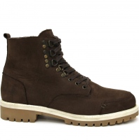 Тёплые, удобные и прочные чёрные треккинговые мужские ботинки фабрики Krisbut. Износостойкая австралийская шерсть быстро сохнет и отлично "держит" тепло, мягкая и крепкая кожа. Толстая эластичная подошва не дубеет на морозе, не скользит и защищает от холода. Для любых стоп с любым подьёмом, кроме самых узких и самых полных. Сочетание крепкой долговечной молнии и шнуровки позволяет точно подогнать ботинки по ноге шнурками и быстро одевать и снимать.