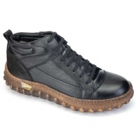 Мужские зимние ботинки на шнурках и молнии с меховым утеплением. Цвет черный, верх - кожа/нубук. Из натуральной кожи КРС первой группы качества. Очень удобная колодка. Для любых стоп в пределах ортопедической нормы, кроме самых узких и гипершироких. Утолщённые и мягкие подошва и каблук. Из современного полиуретанового эластомера, долго не стираются, почти не скользят, позволяют хорошо чувствовать педали и амортизируют при ходьбе.