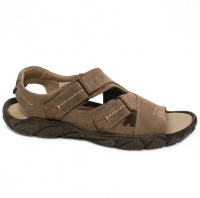 Удобные и лёгкие кожаные мужские сандалии. Широкие мягкие ремешки. Толстая прошитая польская кожа не растягивается и не расползается от воды. Мужская летняя обувь для любых стоп, кроме самых узких, 2 долгоиграющих липучки подгоняют сандалии под любую стопу. Мягкая пружинистая подошва из современного эластомера сконструирована под массу тела до 150 кг, долго не стирается и амортизирует при ходьбе. Длина общая - 33 см, стельки - 31 см.