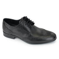 Чёрные классические мужские броги Bonty для нормальных и несколько широких стоп с любым подьёмом, кроме очень высокого. Исполнены из мягкой и прочной натуральной кожи КРС. Оптимально фиксируют ногу, суперудобная колодка - пальцы не зажимают. 5 рядов люверсов реализуют комфортную подгонку по ноге. Сверхлёгкие подошва и каблук из современного полиуретанового ТЭПа упруго пружинят в процессе ходьбы, бега и при ударах.